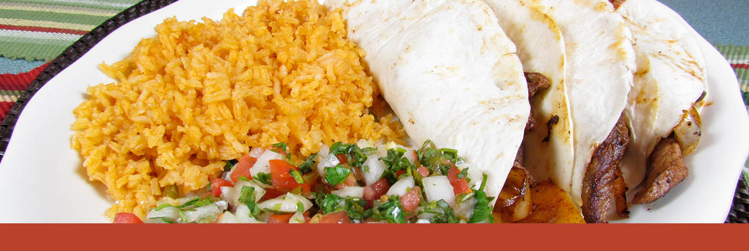 FIESTA TACOS$16.99 Three flour tortillas stuffed with beef strips, with mexican sausage, onions, cheese. Served with rice and refried beans. GRILLED FISH TACOS$16.99 Three flour tortillas stuffed with seasoned with grilled tilapia, lettuce, cheese and pico de gallo. Served with fried pinto beans.